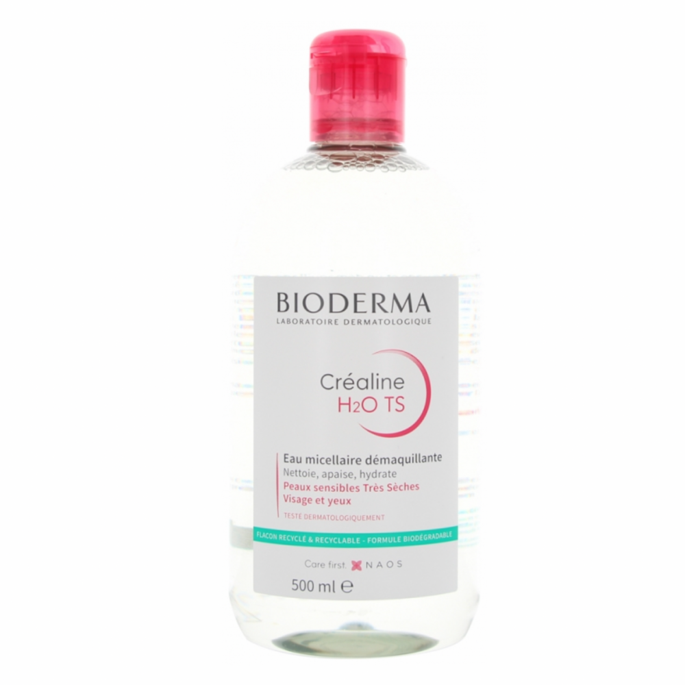 Bioderma Créaline H2O TS Micellar Cleansing Water 500 مل هو ماء ميسيلار مُصمم خصيصًا للبشرة الحساسة شديدة الجفاف.